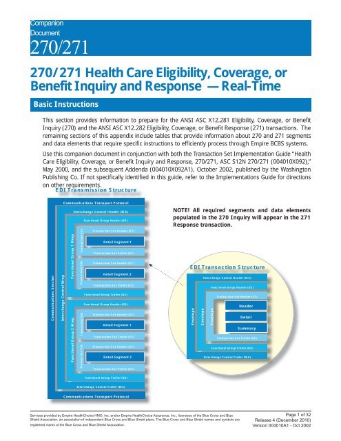 Edi 270 271. This transaction is typically sent by insurance companies government agencies like Medicare or Medicaid or other organizations that. After careful review of the existing IG for the Version 005010X279A1 we have compiled the UnitedHealthcare specific CG. Complete the form as appropriate using the information provided below.