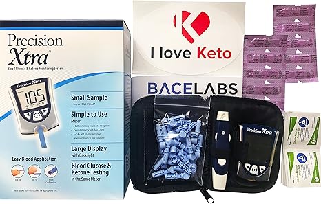 Amazon Com Precision Xtra Blood Glucose And Ketone Monitoring Meter Kit Bundle 10 Precision Xtra Ketone Test Strips One Month Abbott Freestyle 28 Gauge Lancets Dynarex Alcohol Wipes I Love Keto Sticker Health Personal Care