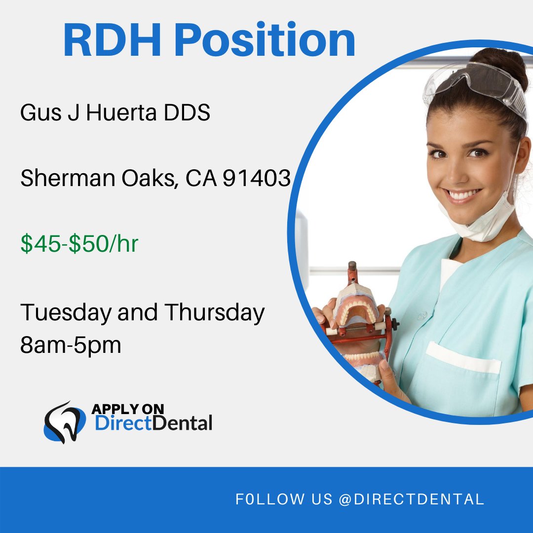Dr HUERTAs practice is located in the city of SHERMAN OAKS CA at 4910 VAN NUYS BLVD. Apply for a Gus J Huerta DDS Inc Registered Dental Assistant - 25hr job in Hawthorne CA. Gus Huerta DDS is a dental office located in Los Angeles CA.
