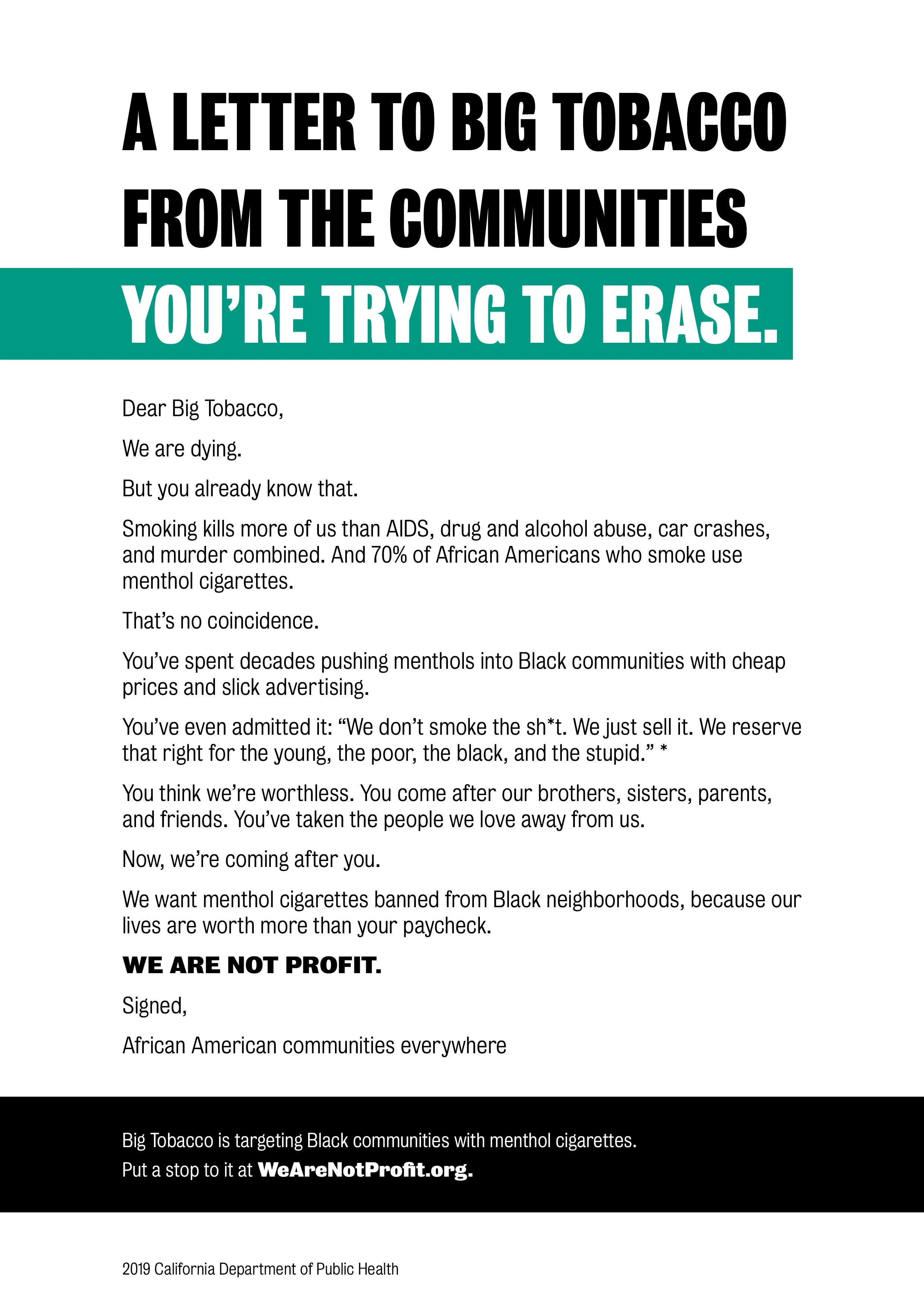 We Are Not Profit Tobacco Free Ca